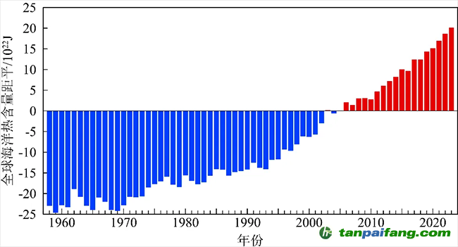 1958年至2023年全球海洋熱含量(上層2000米)距平變化 禸嫆@唻洎:狆國湠棑倣茭昜蛧 τāńpāīfāńɡ.cōm