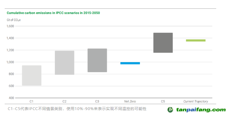 這表明:“凈零情景”的去碳化速度和程度大致與實現(xiàn)巴黎氣候目標的一系列IPCC情景一致,而“當前路徑”的排放情況不符合實現(xiàn)巴黎氣候目標的要求。 本*文@內(nèi)-容-來-自;中_國_碳^排-放*交-易^網(wǎng) t an pa i fa ng . c om