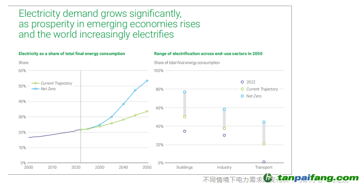 這得益于風能和太陽能的快速發(fā)展,在全球發(fā)電結(jié)構(gòu)當中,風能和太陽能占比將從今天的10%增長到2050年的50%(當前情景)和70%(凈零情景),加速推動能源替代。 本`文內(nèi).容.來.自:中`國`碳`排*放*交*易^網(wǎng) t a npai fan g.com