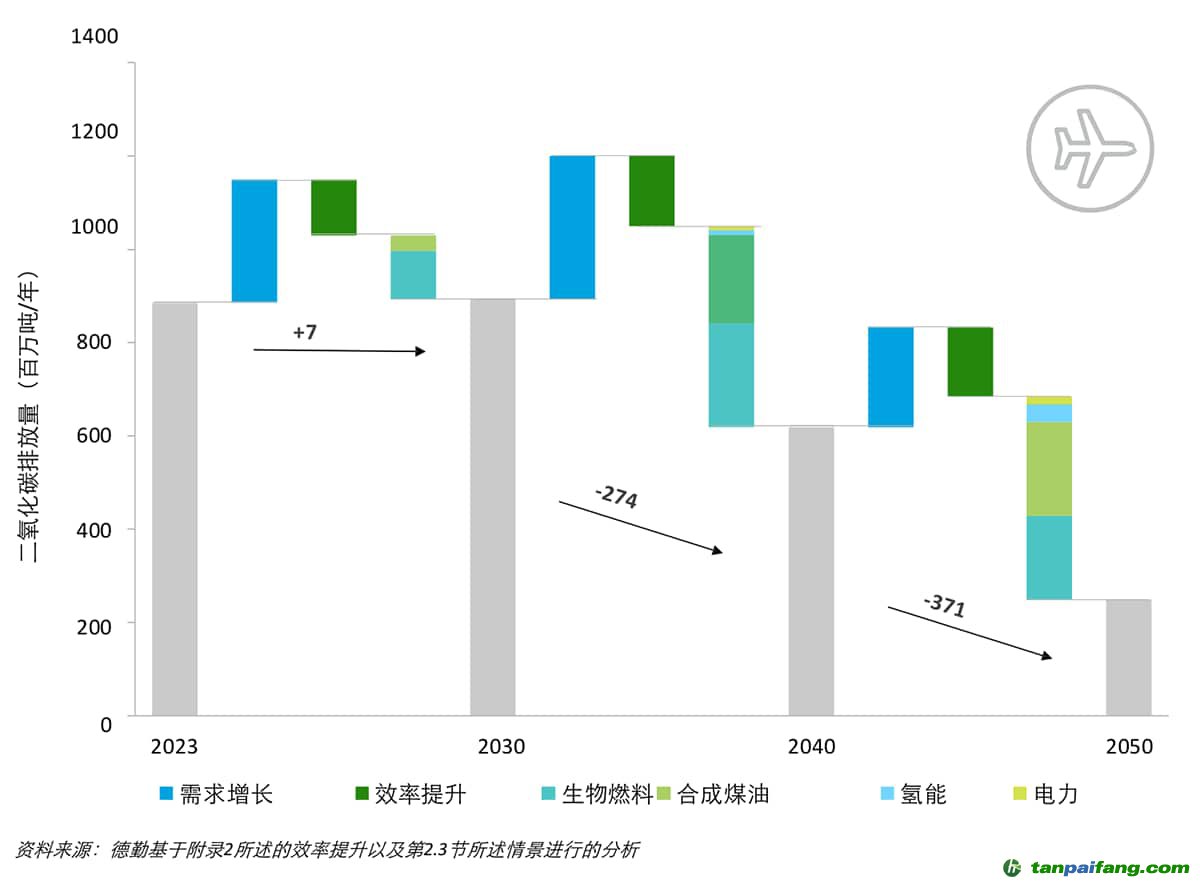 航空業(yè)預(yù)計(jì)將在2023年至2050年間實(shí)現(xiàn)75%的碳減排,這主要?dú)w功于從2030年起可持續(xù)航空燃料的廣泛采用。