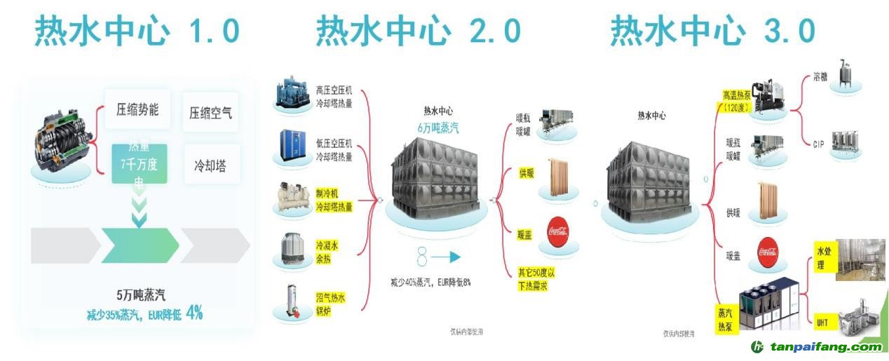 據(jù)介紹,該系統(tǒng)實施分三步走:首先回收工業(yè)高溫余熱,提高能源利用率;其次利用高溫工業(yè)熱泵提升余熱至高溫?zé)崴?,或同時供應(yīng)工藝?yán)渌透邷責(zé)崴蛔詈笸ㄟ^超高溫蒸汽熱泵制備100℃~170℃蒸汽,形成電力驅(qū)動的冷熱汽耦合供能體系。目前,該系統(tǒng)已在啤酒加工、工業(yè)飲料等行業(yè)構(gòu)建典型