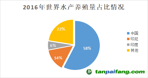 圖2:2016年世界水產(chǎn)養(yǎng)殖量占比情況 禸嫆@唻洎:狆國(guó)湠棑倣茭昜蛧 τāńpāīfāńɡ.cōm