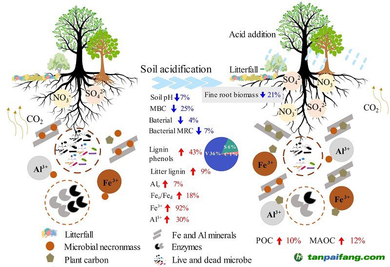 平臺,研究揭示了酸化森林土壤有機(jī)碳累積機(jī)制。相關(guān)成果在線發(fā)表于《植物與土壤》。