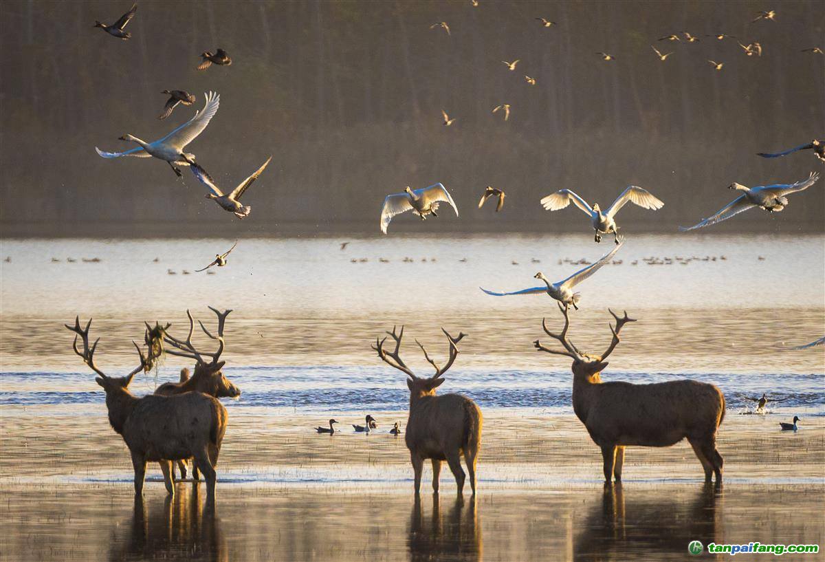 11月26日,石首麋鹿國(guó)家級(jí)自然保護(hù)區(qū),一群小天鵝從麋鹿群旁飛過。隨著保護(hù)區(qū)生態(tài)環(huán)境日益向好,越來(lái)越多的珍稀鳥類來(lái)保護(hù)區(qū)越冬。(湖北日?qǐng)?bào)全媒記者 柯皓 通訊員 楊濤 攝) 本`文@內(nèi)-容-來(lái)-自;中^國(guó)_碳0排0放^交-易=網(wǎng) ta n pa i fa ng . co m