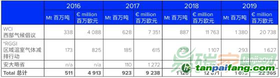 與2018年相比,北美兩個碳市場(西部氣候倡議(WCI)和區(qū)域溫室氣體減排行動(RGGI))的交易量和總體價值均實(shí)現(xiàn)增長,二者的總價值增長了74%,達(dá)到220億歐元。價格上漲是基于2021年信貸供給趨緊的預(yù)期,屆時兩個市場都將進(jìn)入新的階段,并將出臺更多雄心勃勃的上限規(guī)定。