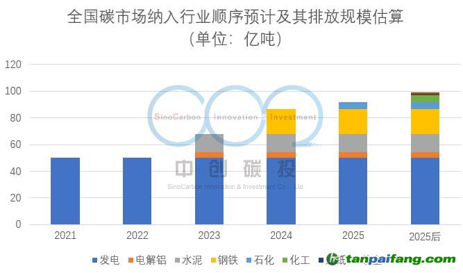 全國碳市場行業(yè)納入順序及規(guī)模變化預估示意圖