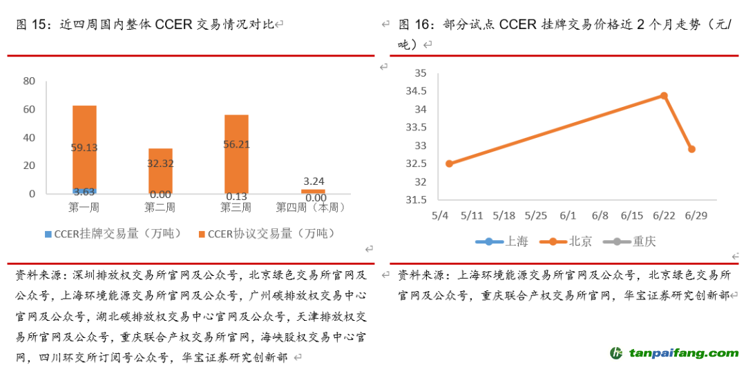 本周(6月27日-7月3日)全國整體碳信用(CCER)二級交易市場交易量大幅下滑。從交易量上看,本周CCER交易量下滑94.25%,主要是上海、四川等地CCER交易量大幅下降。根據(jù)可跟蹤到的碳試點CCER掛牌交易價格,近2個月僅有北京試點公布掛牌交易價格,最近一次成交價格相對上次下降4.33%。 本+文`內(nèi).容.來.自:中`國`碳`排*放*交*易^網(wǎng) t a np ai fan g.com