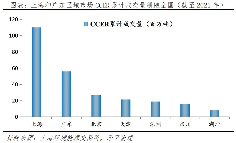 在成交量方面,上海和廣東區(qū)域市場領跑全國。至2021年末,我國9家交易中心CCER累計交易量達到2.68億噸,其中上海市場CCER累計成交量為1.1億噸,占比41%;廣東市場成交量超過5600萬噸,占比21%,北京、深圳、四川、福建和天津的CCER累計成交量在1000-3000萬噸之間,分別占比在4%-10%。 夲呅內傛萊源亍:ф啯碳*排*放^鮫*易-網 τā ńpāīfāńɡ.cōm