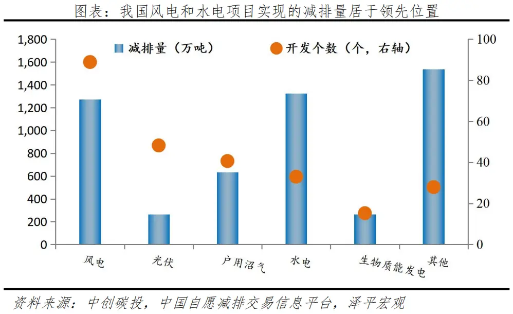 CCER項目的市場交易能夠有效激勵減排行為、抵消碳排放。雖然CCER使用范圍與碳排放額相比較為受限,但通常其價格會低于配額價格,從而企業(yè)可以以更小的代價完成碳排放指標。