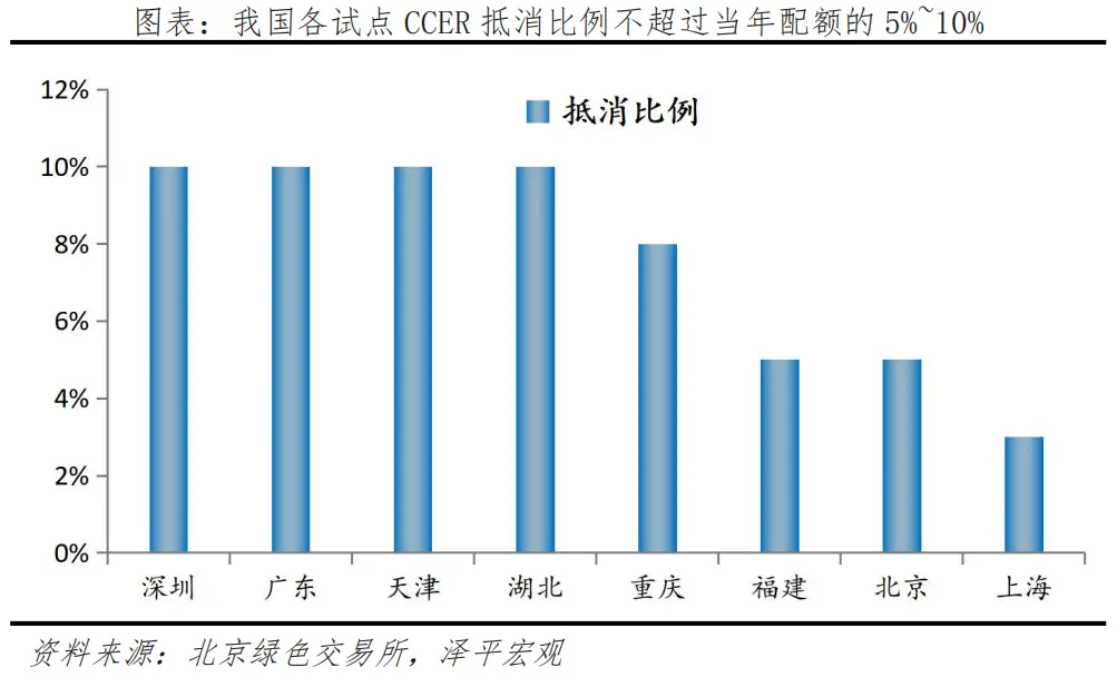 直到2017年,為規(guī)范施行辦法中存在的溫室氣體自愿減排交易量小、個別項目不夠規(guī)范的問題,CCER項目備案暫停受理,但存量的CCER交易仍在各大試點進行。自愿減排市場試點以來,總體上CCER抵消的碳排放量一般不超過當年配額總量的5%-10%。