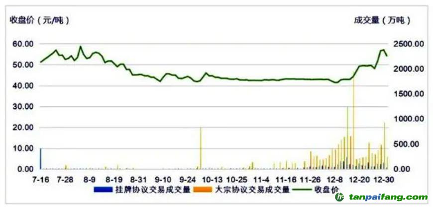 報告稱,全國碳市場第一個履約周期共運(yùn)行114個交易日,成交均價42.85元/噸,每日收盤價在40~60元/噸之間波動。