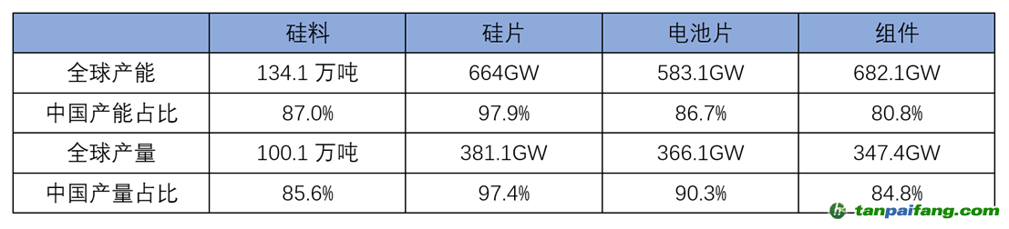 2022年全球光伏產(chǎn)品產(chǎn)能、產(chǎn)量及中國產(chǎn)品在全球的份額