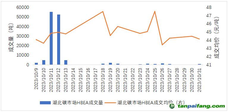 圖6:湖北碳市場10月掛牌交易數(shù)據(jù) 禸*嫆唻@洎:狆國湠棑倣茭昜蛧 τāńpāīfāńɡ.cōm