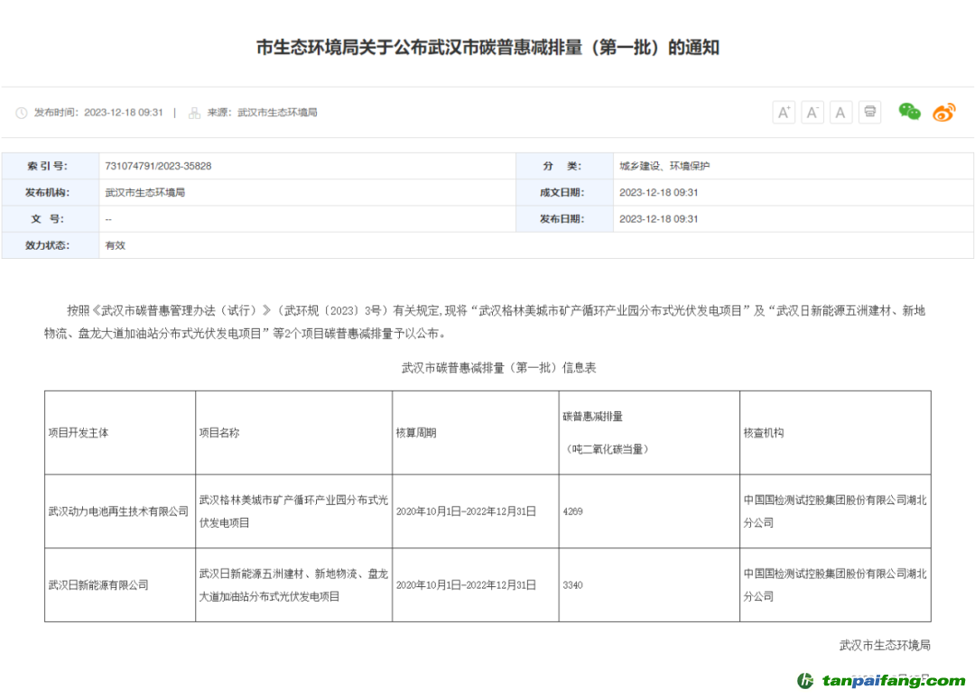 據(jù)了解,首批登記的碳普惠減排量來源,主要是武漢格林美城市礦產循環(huán)產業(yè)園分布式光伏發(fā)電項目以及武漢日新能源五洲建材、新地物流、盤龍大道加油站分布式光伏發(fā)電項目。 內/容/來/自:中-國-碳-排-放*交…易-網-tan pai fang . com