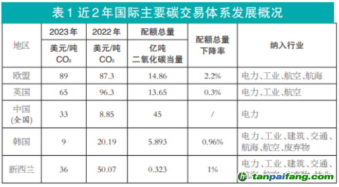 截至2024年1月底,全球共有36個(gè)碳交易體系生效,另有14個(gè)正在建設(shè)。碳市場(chǎng)已覆蓋全球約18%的溫室氣體排放量、1/3的人口和58%的GDP(國(guó)內(nèi)生產(chǎn)總值),實(shí)施碳交易的地區(qū)逐步從發(fā)達(dá)國(guó)家拓展至發(fā)展中國(guó)家,從歐洲、北美拓展至拉美、東亞等地,對(duì)于高質(zhì)量實(shí)現(xiàn)區(qū)域減排目標(biāo)發(fā)揮著日益重要的作用。