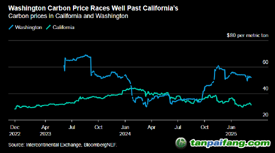 華盛頓州碳價遠遠超過加利福尼亞州 本`文內.容.來.自:中`國`碳`排*放*交*易^網(wǎng) t a npai fan g.com