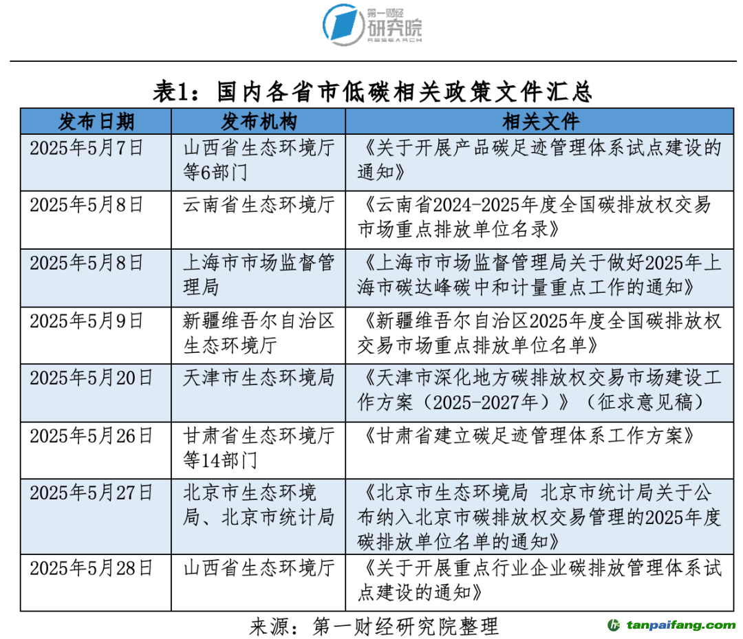 5月國內(nèi)各省市出臺(tái)了一些低碳相關(guān)政策,具體如下: