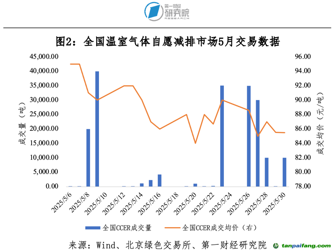 5月,全國碳市場(chǎng)碳價(jià)下行,由于供大于求,疊加節(jié)假日因素,月末價(jià)格已低于70元/噸。國務(wù)院審議通過有關(guān)文件,推進(jìn)制造業(yè)綠色低碳發(fā)展。 本@文$內(nèi).容.來.自:中`國`碳`排*放^交*易^網(wǎng) t a np ai fan g.c om