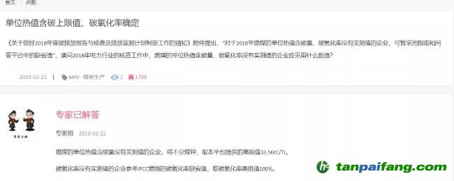 2019年4月,國家碳市場幫助平臺更新了一條名為“單位熱值含碳上限值、碳氧化率確定”的