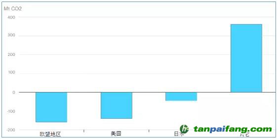 2018-2019全球主要地區(qū)的碳排放變化