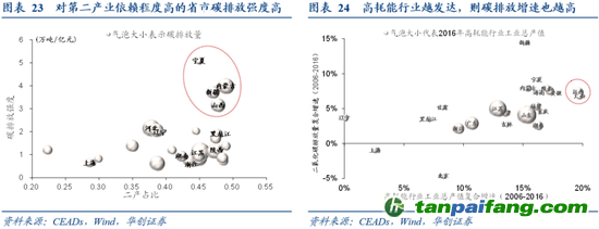 本篇報告得出一個初步結論,碳排放與工業(yè)乃至高耗能行業(yè)的發(fā)達程度存在一定正向相關關系,因此,那些碳排放總量、強度和增速本身較高,或?qū)Ω吆哪苄袠I(yè)較為依賴的省市可能更容易受到碳中和等相關政策的影響。具體分析如下: 本文+內(nèi)-容-來-自;中^國_碳+排.放_交^易=網(wǎng) t a n pa ifa ng .c om