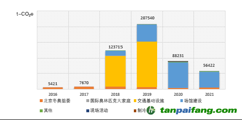 對(duì)于賽前階段的實(shí)際排放量而言,經(jīng)核算,北京冬奧會(huì)2016—2021年6月溫室氣體排放總量為48.9萬噸二氧化碳當(dāng)量,各年度排放量占比依次分別為1.1%、1.6%、25.3%、42.4%、18.0%和11.5%。前三大排放源分別為交通基礎(chǔ)設(shè)施(實(shí)際排放總量的比重為50.0%)、場(chǎng)館建設(shè)改造(占比41.3%)和北京冬奧組委(占比7.5%)。 禸*嫆唻@洎:狆國湠棑倣茭昜蛧 τāńpāīfāńɡ.cōm