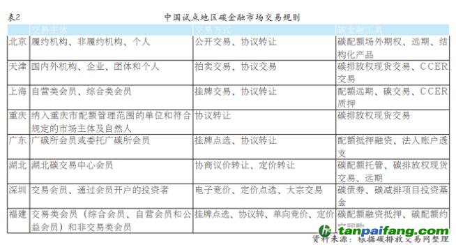 中國有八個省市開展碳排放權(quán)交易試點(diǎn),不同地方在交易主體、配額分配機(jī)制、