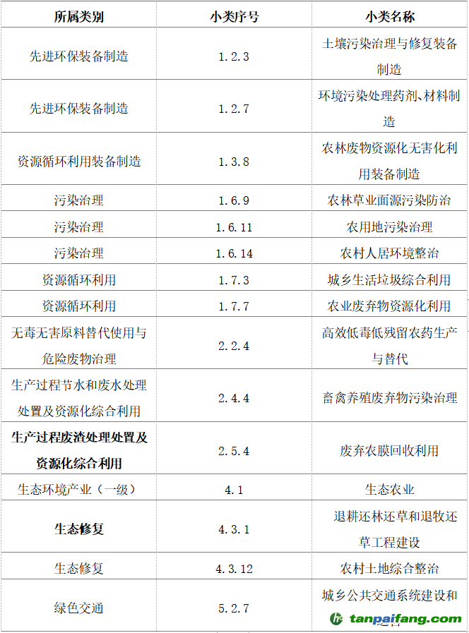 表 1 《綠色產(chǎn)業(yè)指導(dǎo)目錄(2019年版)》中“三農(nóng)”項(xiàng)目摘錄