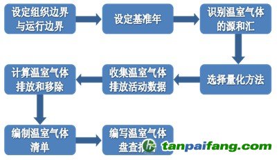 ISO 14064是目前使用最為廣泛的量化與報告溫室氣體排放的國際標準,提供了如圖所示的企業(yè)碳盤查步驟。
