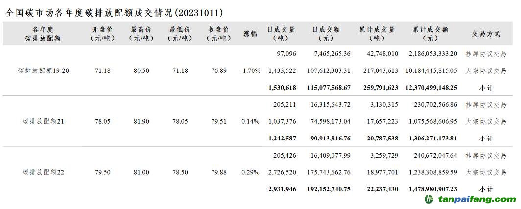 碳排放配額總成交量5,705,151噸,總成交額398,144,126.18元。