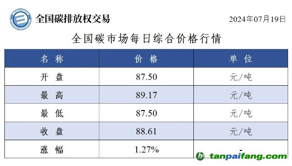 碳排放配額總成交量33,401噸,總成交額2,983,988.00元。