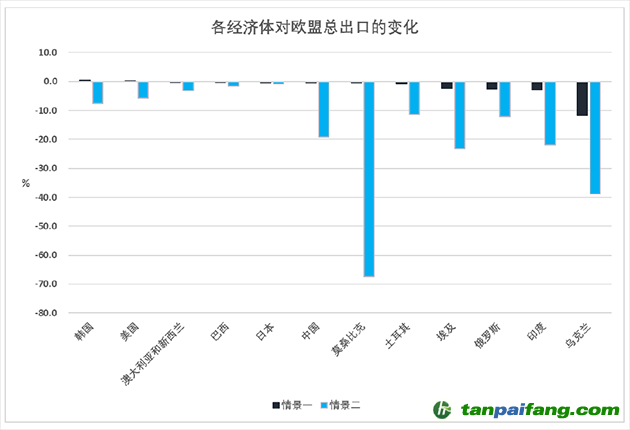情景二是假設(shè)歐盟的CABM擴大到所有進口商品和服務(wù)(歐盟會在三年的過渡期后探討是否擴大適用產(chǎn)品范圍),并且在計算含碳量時計入上游價值鏈產(chǎn)生的所有間接排放。 本%文$內(nèi)-容-來-自;中_國_碳|排 放_交-易^網(wǎng)^t an pa i fang . c om