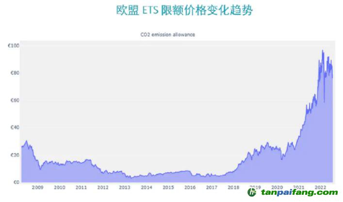 根據(jù)《巴黎協(xié)定》規(guī)定,各國在確立各自的國家自主貢獻(NDCs)目標(biāo)時,擁有一定的靈活性,這種方式起到了一定促進作用,但同時也造成了各國家在應(yīng)對環(huán)境變化的努力上的差異性和不對稱性。在歐盟努力推行2030年55%的減排目標(biāo)時,排放配額成本已上升至80-100歐元每公噸。在碳