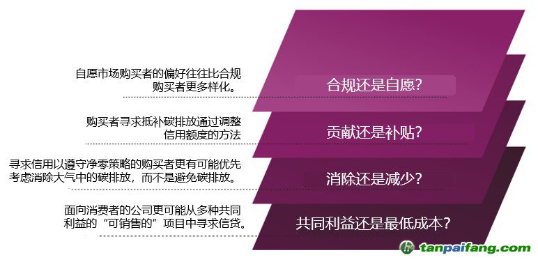 由于買家的不同偏好和需求,市場的異質(zhì)性正在增加。在自發(fā)承諾顯著增加的背景下,買家的認(rèn)購原因和優(yōu)先級多樣性也有所提升,自發(fā)買家的決策也越來越多樣化,不同的買家對價格、質(zhì)量、誠信和其他特征的優(yōu)先級不同。在國際合規(guī)市場上,買家的選擇在很大程度上是有限的,因為需求只來源于碳信用相應(yīng)的調(diào)整,這表明了主要購買者的決定對市場的影響。