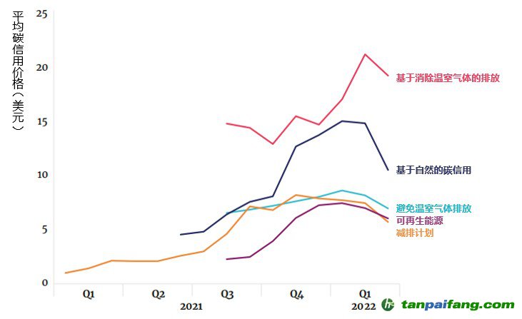 碳信用額度的價(jià)格已大幅上漲,不過不同類型的信用額度的價(jià)格有所不同。在獨(dú)立信貸機(jī)制的信貸市場上,買家對信貸的行業(yè)、地理位置、年份以及信貸的共同效益等特征給出的一系列價(jià)值是不同的。雖然近年來出現(xiàn)了一些提供標(biāo)準(zhǔn)化合同的舉措,但價(jià)格差異很大,交易平臺提供的合同代表了不同行業(yè)的信貸。例如,標(biāo)準(zhǔn)普爾全球普氏能源資訊的評估表明,基于消除溫室氣體排放的碳定價(jià)遠(yuǎn)高于基于可再生能源項(xiàng)目的碳定價(jià)。