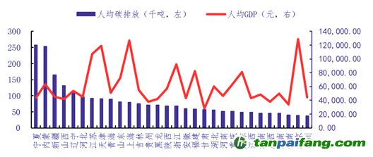 由于各省之間地理環(huán)境,產(chǎn)業(yè)結(jié)構(gòu),經(jīng)濟發(fā)展現(xiàn)狀差異較大,雙碳政策的實施力度在地區(qū)之間也應(yīng)設(shè)置有差異的合理區(qū)間(如圖2所示)。我國2030碳達(dá)峰目標(biāo),并不要求所有省市同時實現(xiàn)碳達(dá)峰,有條件的低碳地區(qū)可以率先實現(xiàn)碳達(dá)峰進而提前轉(zhuǎn)向碳中和目標(biāo),帶動排放量較高的地區(qū)逐步減排,從而從整體上達(dá)到全國峰值。2021年七月建立的全國統(tǒng)一碳市場將極大促進各省市之間實現(xiàn)聯(lián)通,為企業(yè)決策提供清晰且長期的碳價格信號,也將引導(dǎo)更多資金有序流入各省綠色產(chǎn)業(yè)。