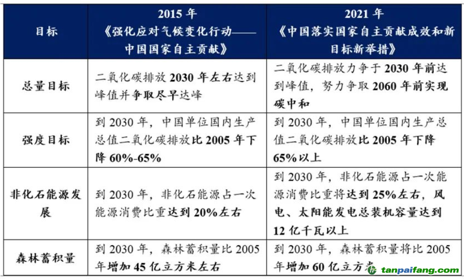 圖表1:中國(guó)自主貢獻(xiàn)目標(biāo)對(duì)比