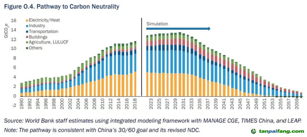 以下是根據(jù)報(bào)告的模擬,中國(guó)在這些部門(mén)實(shí)現(xiàn)凈零排放或