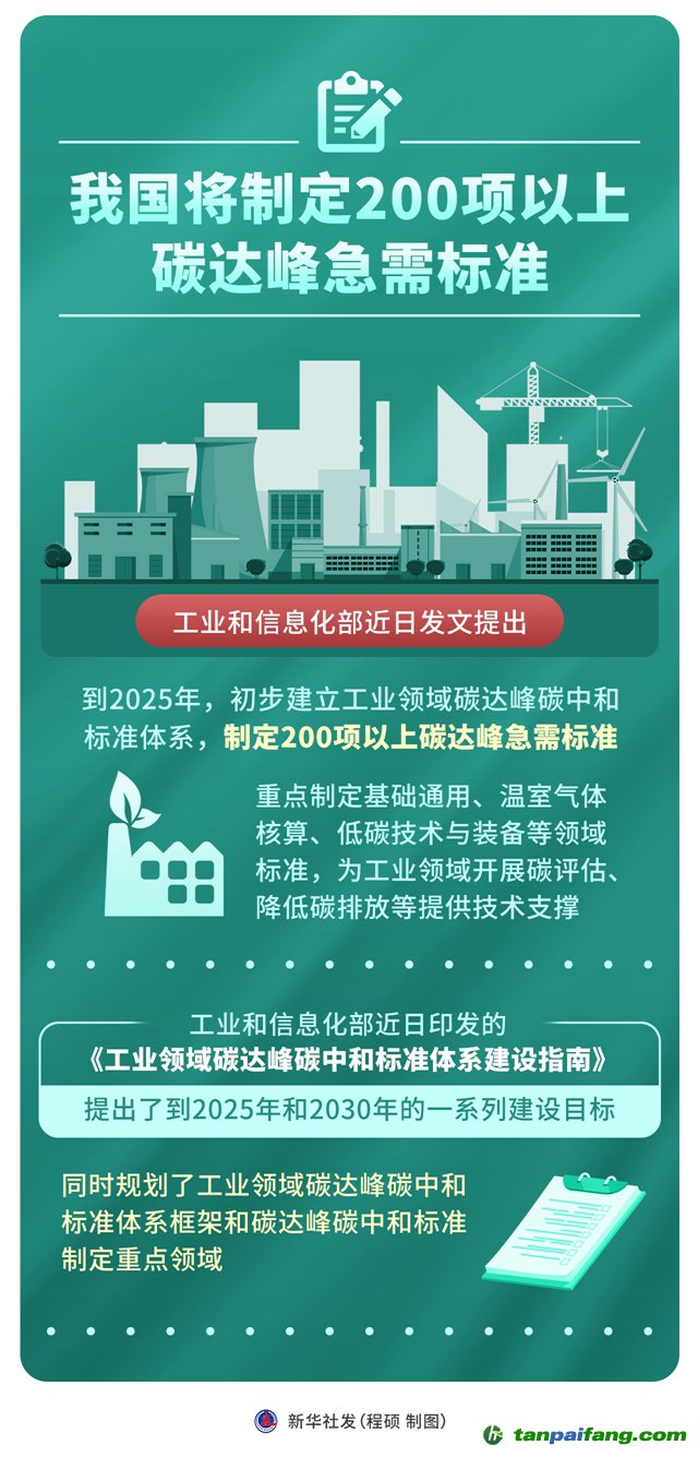 工業(yè)和信息化部近日發(fā)文提出,到2025年,初步建立工業(yè)領(lǐng)域碳達(dá)峰碳中和標(biāo)準(zhǔn)體系,制定200項(xiàng)以上碳達(dá)峰急需標(biāo)準(zhǔn),重點(diǎn)制定基礎(chǔ)通用、溫室氣體核算、低碳技術(shù)與裝備等領(lǐng)域標(biāo)準(zhǔn),為工業(yè)領(lǐng)域開展碳評估、降低碳排放等提供技術(shù)支撐。