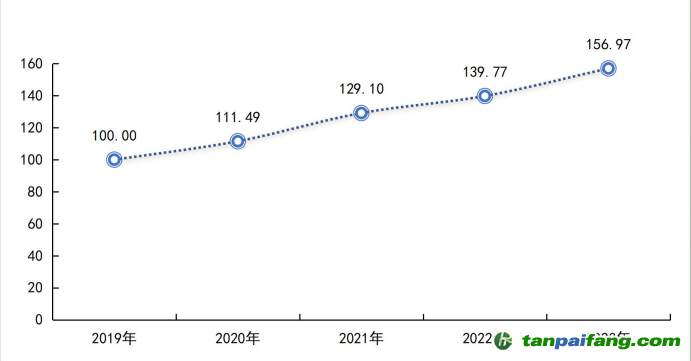 報(bào)告總指數(shù)運(yùn)行結(jié)果顯示,2019-2023 年,“雙碳”能源產(chǎn)業(yè)轉(zhuǎn)型發(fā)展水平呈現(xiàn)持續(xù)上升趨勢(shì),2023 年指數(shù)值達(dá)到 156.97 點(diǎn),同比增長(zhǎng) 12.31%,基期以來(lái)年均復(fù)合增長(zhǎng)率達(dá)到 11.93%。總體來(lái)看,我國(guó)的產(chǎn)業(yè)結(jié)構(gòu)和能源結(jié)構(gòu)調(diào)整優(yōu)化取得明顯進(jìn)展,重點(diǎn)行業(yè)能源利用效率大幅提升,煤炭消費(fèi)增長(zhǎng)得到嚴(yán)格控制,新型電力系統(tǒng)加快構(gòu)建,綠色低碳技術(shù)研發(fā)和推廣應(yīng)用取得新進(jìn)展,綠色生產(chǎn)生活方式得到普遍推行,轉(zhuǎn)型工作取得重要階段性成果,逐步邁入高質(zhì)量發(fā)展新階段。
