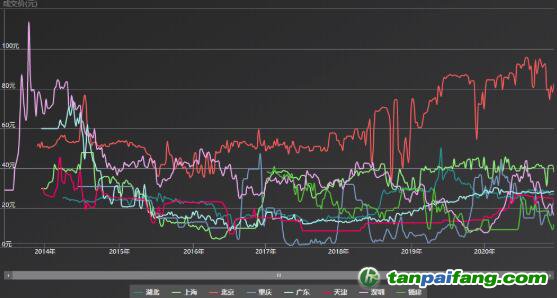 價(jià)格地區(qū)差別大,其次是深圳、上海、北京、重慶、福建、四川。