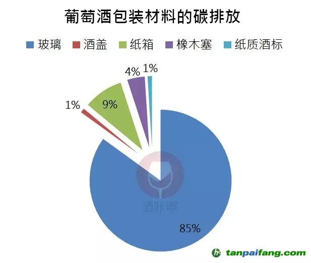 前面已經(jīng)提到,葡萄酒的原材料的碳排放最為嚴重,而在其原材料中排放最多二氧化碳的并不是葡萄本身,而是用于包裝葡萄酒的玻璃瓶、酒塞等。