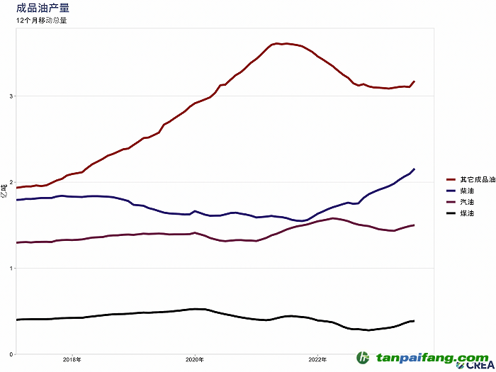 國內(nèi)石油制品消費(fèi)量增長趨勢圖片來源:能源與清潔空氣研究中心(CREA)