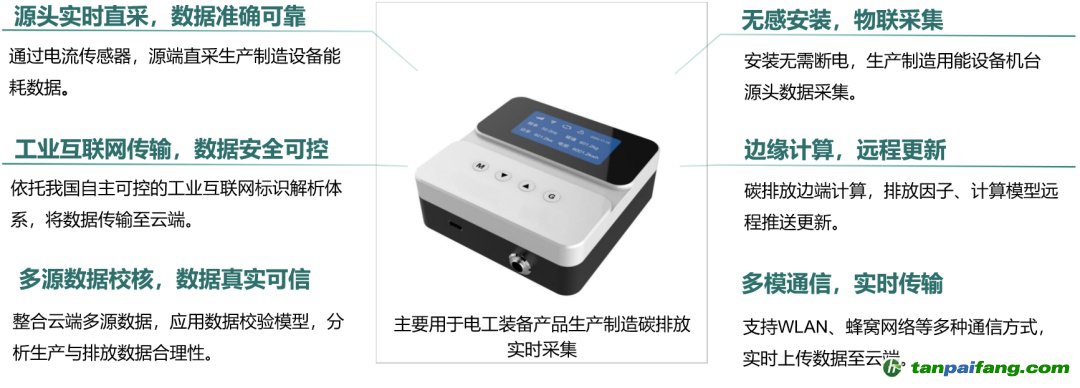 工業(yè)互聯(lián)網(wǎng)云端碳表可動態(tài)感知讀取電流、電壓等瞬時(shí)數(shù)據(jù),結(jié)合內(nèi)嵌的碳排放轉(zhuǎn)換算法計(jì)算實(shí)時(shí)碳排放數(shù)據(jù),并將數(shù)據(jù)傳輸和儲存至云端,為企業(yè)碳排放、產(chǎn)品碳足跡計(jì)算提供有效支撐。