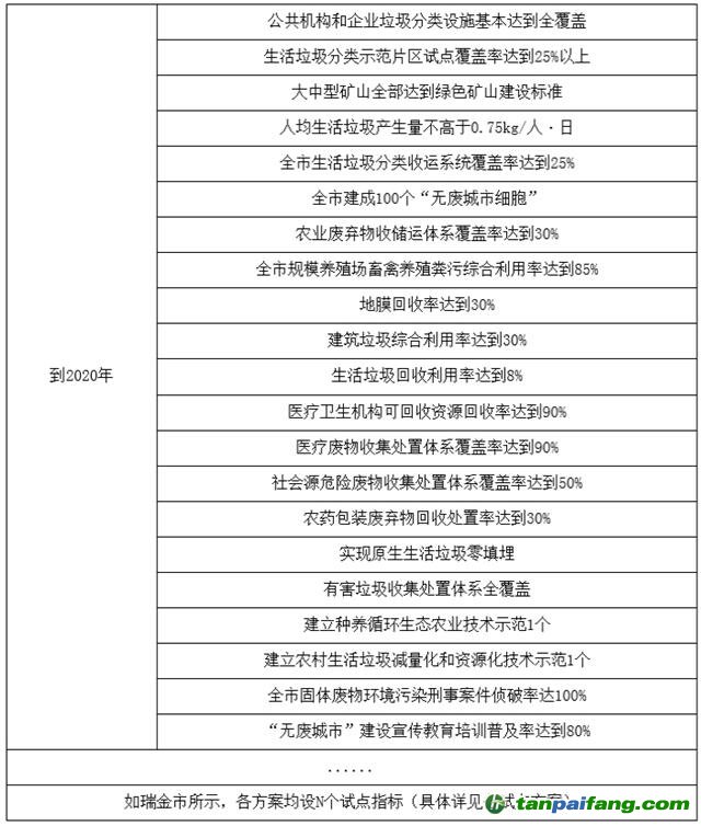 匯總16個試點(diǎn)方案 “無廢城市”建設(shè)目標(biāo)