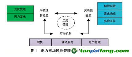 案例中可以發(fā)現(xiàn),在間歇性可再生能源大規(guī)模接入和極端天氣頻發(fā)的背景下,電力市場的風(fēng)險主要來源于系統(tǒng)的不平衡電力以及相應(yīng)的波動電價。為了保障能源綠色低碳轉(zhuǎn)型背景下電力市場的平穩(wěn)運行,各電力市場主體需要充分利用儲能裝置、需求響應(yīng)等靈活性資源來管理電力不平衡風(fēng)險,并積極探索開發(fā)電力期貨、電力期權(quán)等電力金融產(chǎn)品以管理電價波動風(fēng)險(見圖1)。