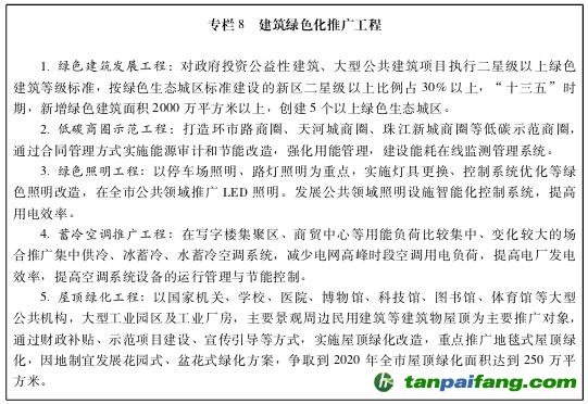 財(cái)政資金投資的房屋建筑、城市更新、城市發(fā)展新區(qū)的新建房屋建筑、大型公共建筑等項(xiàng)目必須按照綠色建筑標(biāo)準(zhǔn)進(jìn)行立項(xiàng)、土地、出讓、規(guī)劃、建設(shè)和管理。鼓勵(lì)房地產(chǎn)開(kāi)發(fā)項(xiàng)目執(zhí)行綠色建筑二星級(jí)及以上標(biāo)準(zhǔn),建設(shè)綠色居住區(qū)。建立和推廣綠色建筑竣工標(biāo)識(shí)制度,對(duì)按規(guī)定應(yīng)執(zhí)行綠色建筑標(biāo)準(zhǔn)的建筑逐步推行強(qiáng)制性標(biāo)識(shí)制度。加快綠色建筑關(guān)鍵技術(shù)研發(fā)和適宜技術(shù)應(yīng)用。力爭(zhēng)到2020年城鎮(zhèn)綠色建筑占新建建筑比重達(dá)到40%。 本@文$內(nèi).容.來(lái).自:中`國(guó)`碳`排*放^交*易^網(wǎng) t a np ai fan g.c om