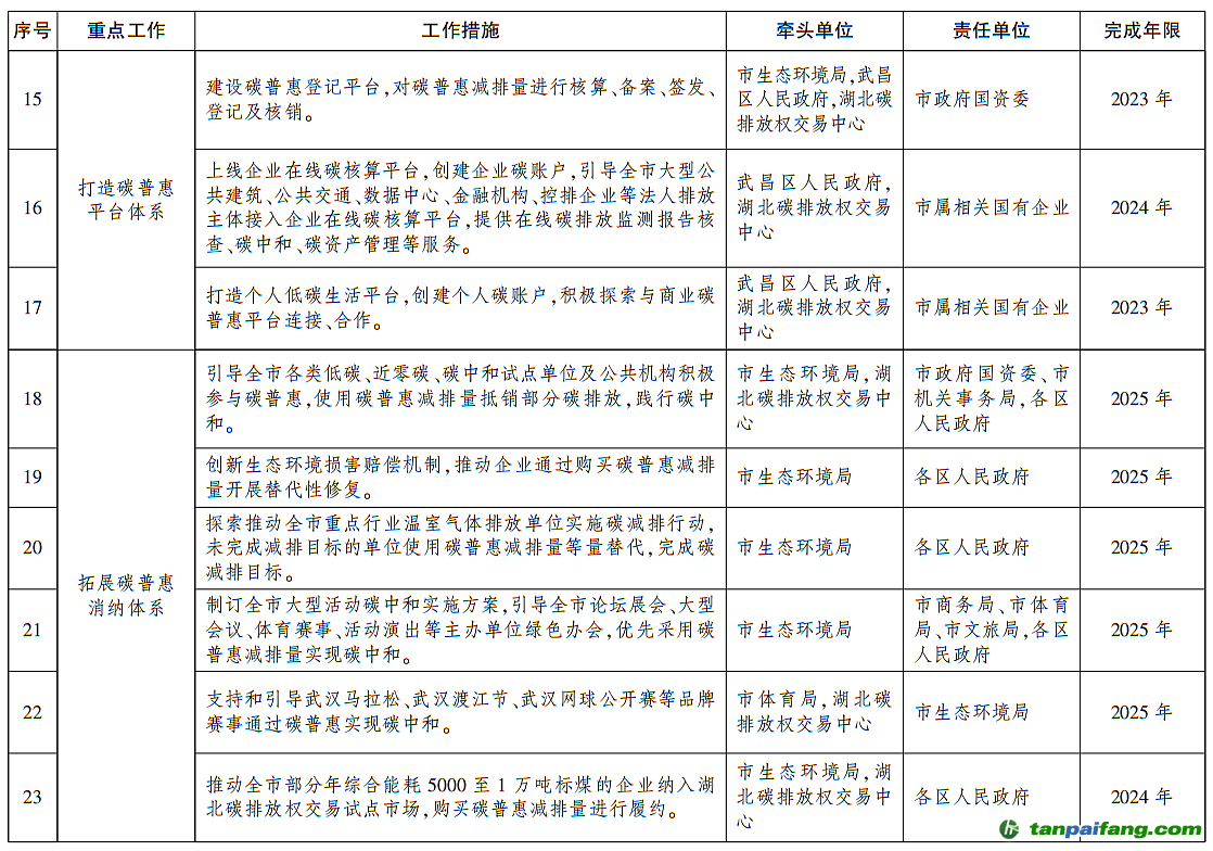 市人民政府辦公廳關(guān)于印發(fā)武漢市碳普惠體系建設(shè)實(shí)施方案(2023—2025年)的通知 本`文@內(nèi)/容/來/自:中-國^碳-排-放^*交*易^網(wǎng)-tan pai fang. com