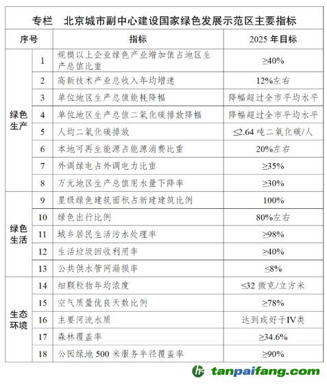 到2025年,北京城市副中心綠色發(fā)展內(nèi)生動力明顯增強(qiáng),綠色產(chǎn)業(yè)規(guī)模顯著提升,綠色技術(shù)創(chuàng)新和成果轉(zhuǎn)化體系基本建立,城市基礎(chǔ)設(shè)施綠色化水平進(jìn)一步提高,生產(chǎn)生活方式綠色轉(zhuǎn)型成效顯著。單位地區(qū)生產(chǎn)總值能耗和單位地區(qū)生產(chǎn)總值二氧化