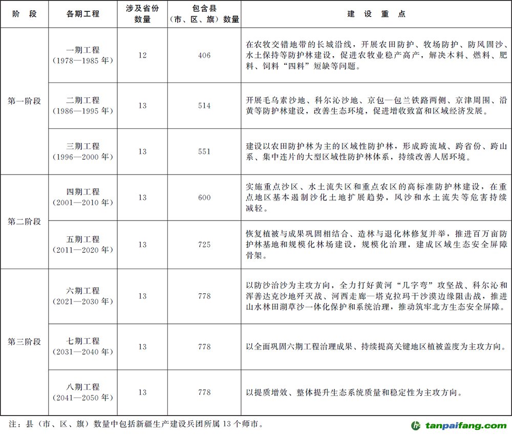 工程建設范圍涉及13個?。ㄗ灾螀^(qū)、直轄市)765個縣(市、區(qū)、旗,以下統(tǒng)稱縣)及新疆生產(chǎn)建設兵團所屬13個師市,總面積448.6萬平方千米,分為4個屏障建設一級區(qū)和30個二級區(qū)。 內-容-來-自;中_國_碳_0排放¥交-易=網(wǎng) t an pa i fa ng . c om
